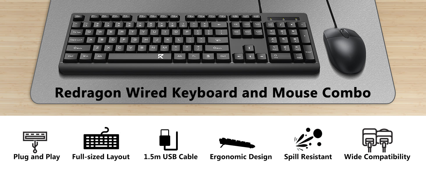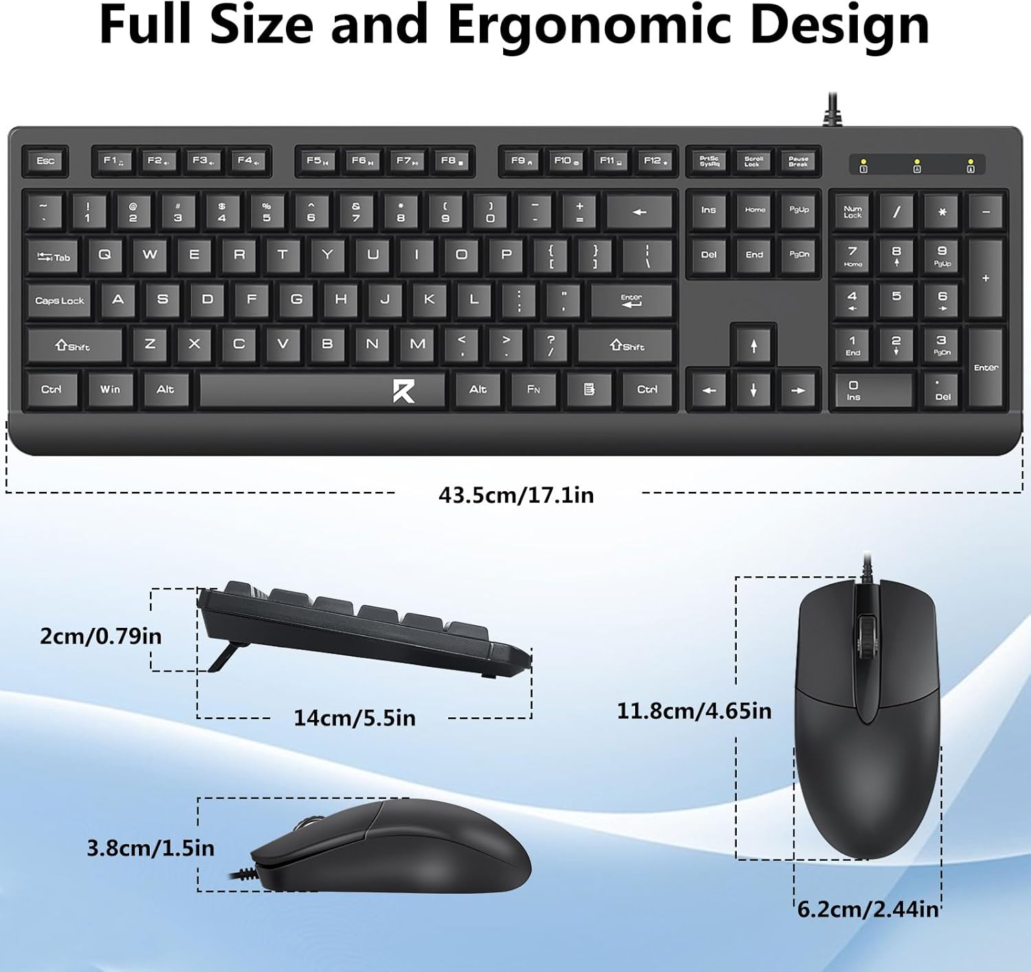 CHUANGQUAN Black BC7543 Wired Keyboard and Mouse Combo tarjoaa sujuvan kirjoittamisen, tarkan ohjauksen ja luotettavan USB-liitännät, jotka ovat ihanteellisia toimistoihin, opiskeluun ja päivittäiseen tietojenkäsittelyyn kestävällä mukavuudella ja tehokkuudella.