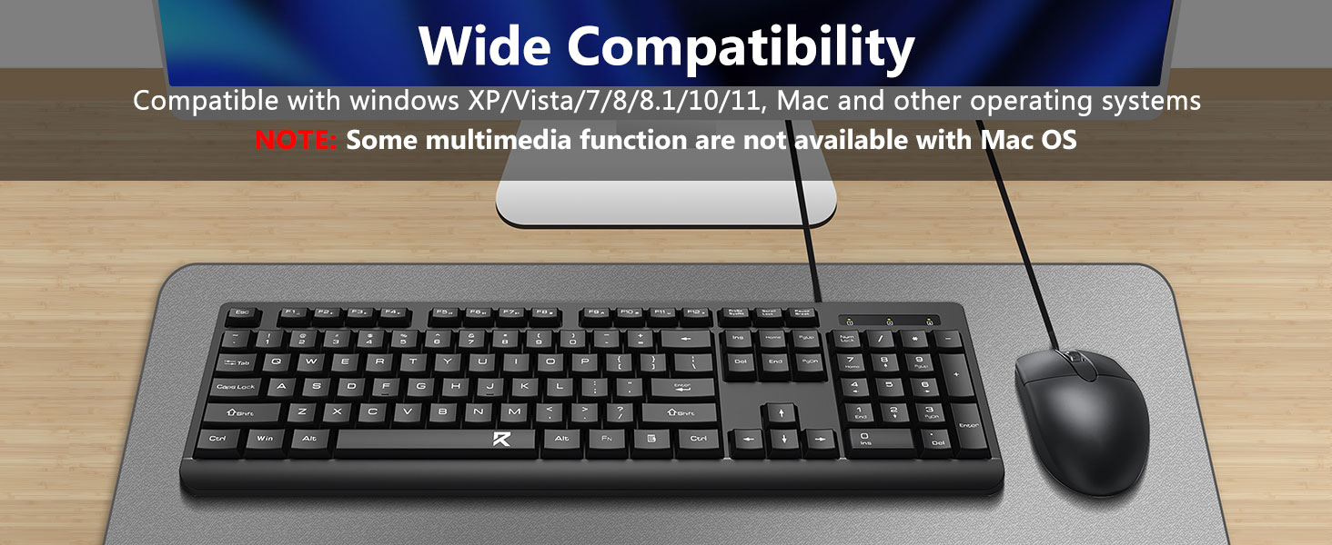 V: Black BC7543 Wired Keyboard and Mouse Combo on yhteensopiva useimpien USB-tulolaitteita tukevien pöytätietokoneiden ja kannettavien tietokoneiden kanssa. Käyttöjärjestelmät, kuten Windows, macOS ja Linux, tunnistavat yleensä näppäimistön ja hiiren automaattisesti, kun ne on yhdistetty.