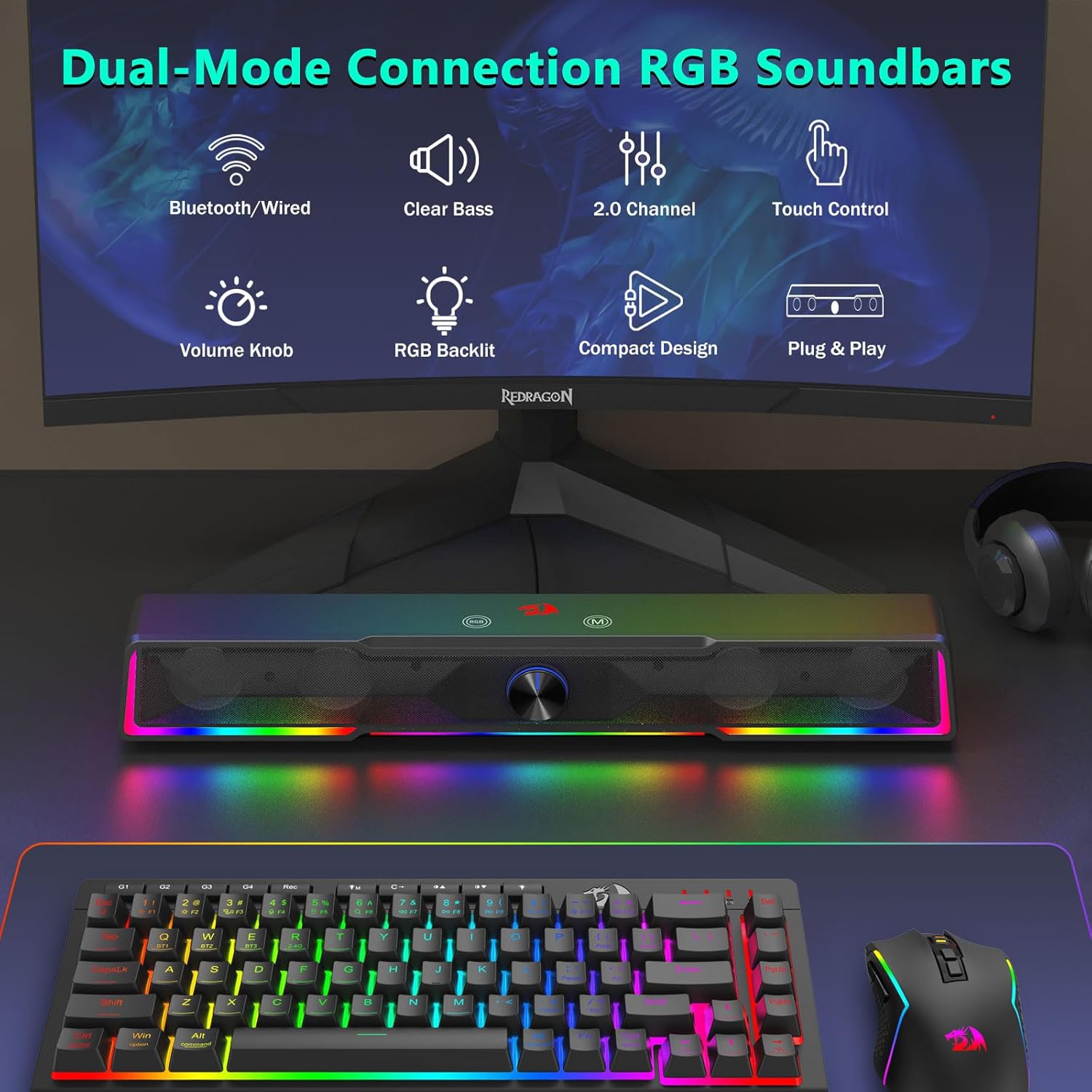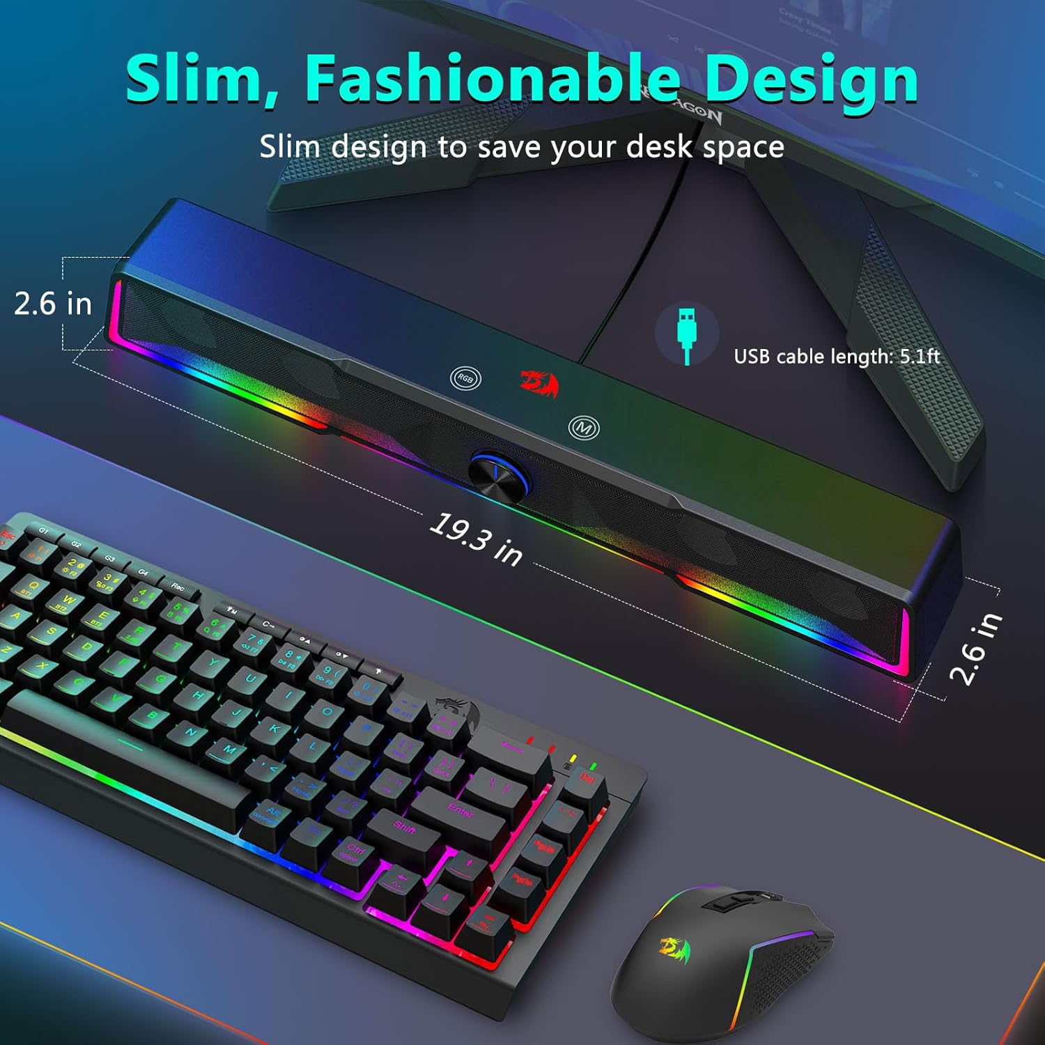 Kompakti pöytäystävällinen muotoilu Soundbar-asettelu vähentää sotkua ja tarjoaa silti tehokkaan äänentoiston.