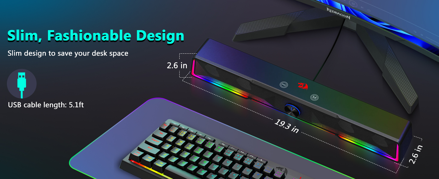 Tilaa säästävä soundbar-muotoilu Toisin kuin perinteiset kaiuttimet, jotka vievät suuria alueita näytön molemmilla puolilla, Black GS516 Bluetooth/USB Wired Connection Soundbar Volume Nupu -tietokonekaiuttimessa on ohut soundbar-rakenne, joka sopii kätevästi useimpien tietokoneen näyttöjen alle. Tämä kompakti muotoilu auttaa pitämään pöytäympäristön puhtaana ja järjestäytyneenä ja tarjoaa silti täyteläisen ja mukaansatempaavan äänen.