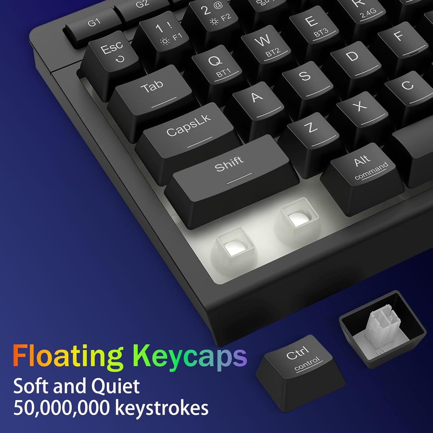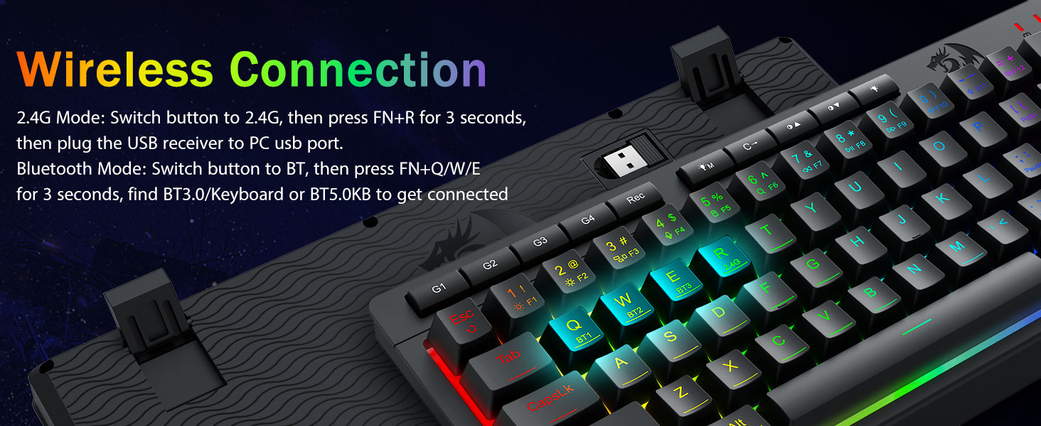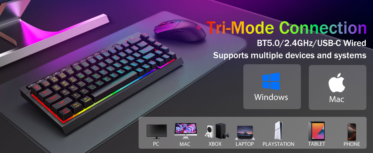 Kuiskaus-hiljainen kirjoittaminen ja tehty kestämään -Vaihda saumattomasti Bluetooth 5.0, 2,4 GHz langattoman tai USB-C langallisen tilan välillä yhdistämällä jopa 5 laitetta samanaikaisesti (PC, Mac, tabletit, puhelimet, PS/XBOX). Vaihda laitteita vaivattomasti pikanäppäimillä tai sivupainikkeella – täydellinen hybridityö-/peliasennuksiin. Pysy vireillä viikkoja 4 000 mAh:n akun avulla (yli 30 päivän valmiustila, 50 tunnin RGB-käyttöaika).