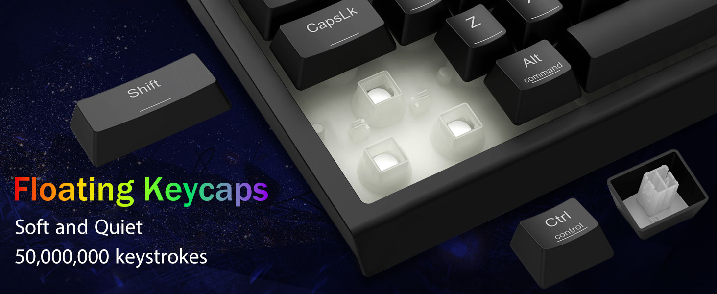 Kuiskaus-hiljainen kirjoittaminen ja tehty kestämään -Koe lähes äänetön toiminta hiljaisella pelikytkimellämme, joka on ihanteellinen toimistoympäristöihin ja peliasetuksiin. Klassinen tulivuorikytkinrakenne varmistaa kestävyyden ja vaikuttavan 50 miljoonan näppäinpainalluksen käyttöiän.