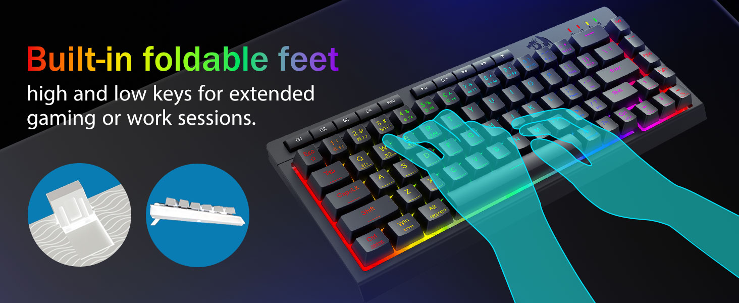 Mukaansatempaava RGB-valaistus ja mukautettava tunnelma -Päästä valloilleen 16,8 miljoonaa RGB-väriä 8 esiasetetulla tilalla (Rainbow Wave, Reactive Typing) + 6 DIY-profiilia. Säädä kirkkautta kirkkaasta hehkusta stealth-tilaan – ihanteellinen myöhäisillan pelaamiseen tai toimistokäyttöön.