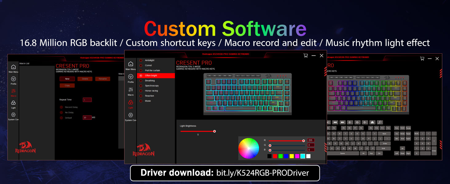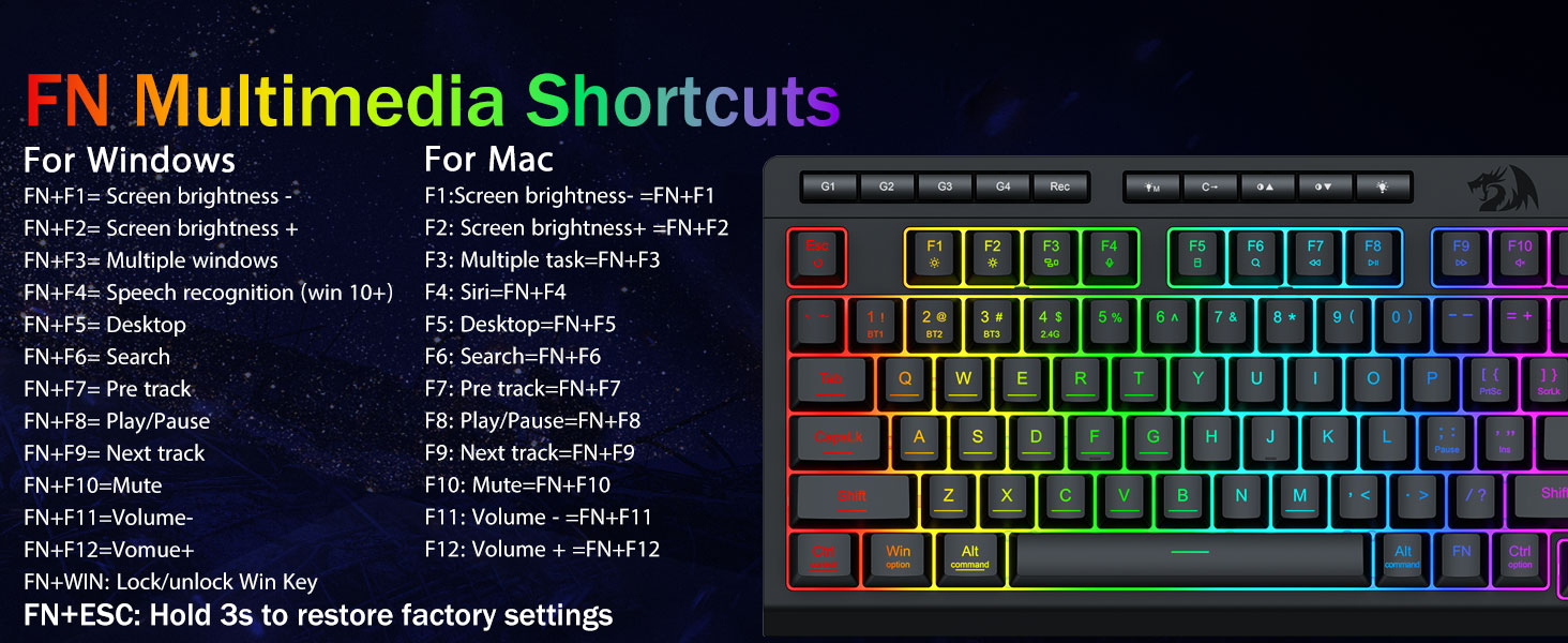 Mukautettavat makrot, vaivaton ohjaus- Ohjelmoi 4 sisäistä makronäppäintä (G1-G4) välittömästi – ohjelmistoa ei tarvita. Tallenna monimutkaisia komboja pelaamiseen, tuottavuuden pikakuvakkeita tai mediakomentoja. Määritä työnkulkusi uudelleen sekunneissa. Voit myös käyttää ohjelmistoja toimintojen mukauttamiseen, makrojen luomiseen, RGB-valojen säätämiseen ja pikavalintojen asettamiseen.