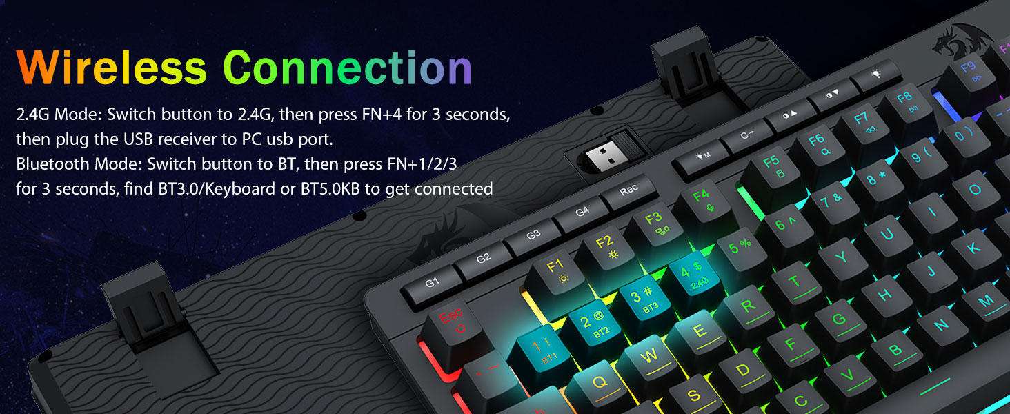 Tri-Mode monipuolisuus ja useiden laitteiden hallinta- Vaihda saumattomasti Bluetooth 5.0, 2,4 GHz langattoman tai USB-C langallisen tilan välillä yhdistämällä jopa 5 laitetta samanaikaisesti (PC, Mac, tabletit, puhelimet, PS/XBOX).