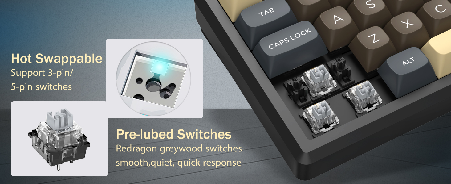 CHUANGQUAN musta K727 60 % langaton mekaaninen pelinäppäimistö tarjoaa kompaktin ohjauksen, sujuvan mekaanisen kirjoittamisen ja joustavan langattoman käytön. Se on ihanteellinen pelaajille ja ammattilaisille, jotka etsivät tarkkuutta, tilaa säästävää suunnittelua ja luotettavaa suorituskykyä.