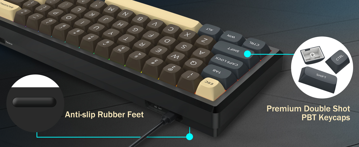 Musta K727 60 % langaton mekaaninen pelinäppäimistö tarjoaa käytännöllisen yhdistelmän kompaktia muotoilua, mekaanista suorituskykyä ja joustavaa liitettävyyttä. Sen virtaviivainen asettelu, luotettava syöttö ja kestävä rakenne tekevät siitä sopivan monenlaisille käyttäjille.