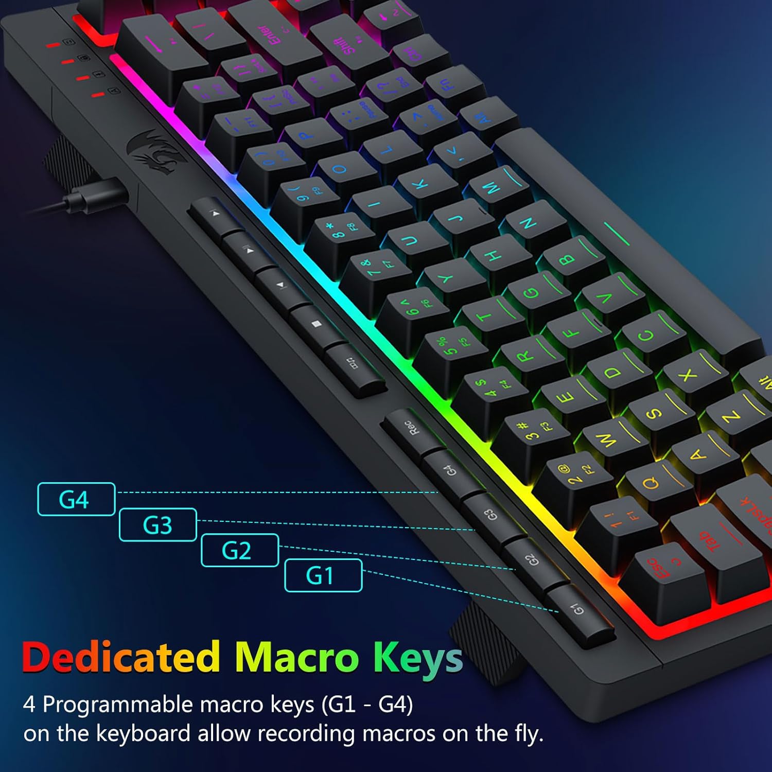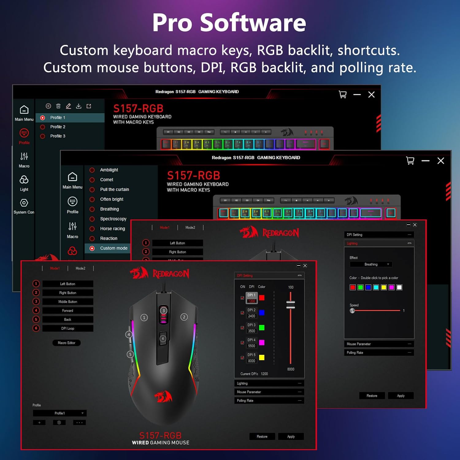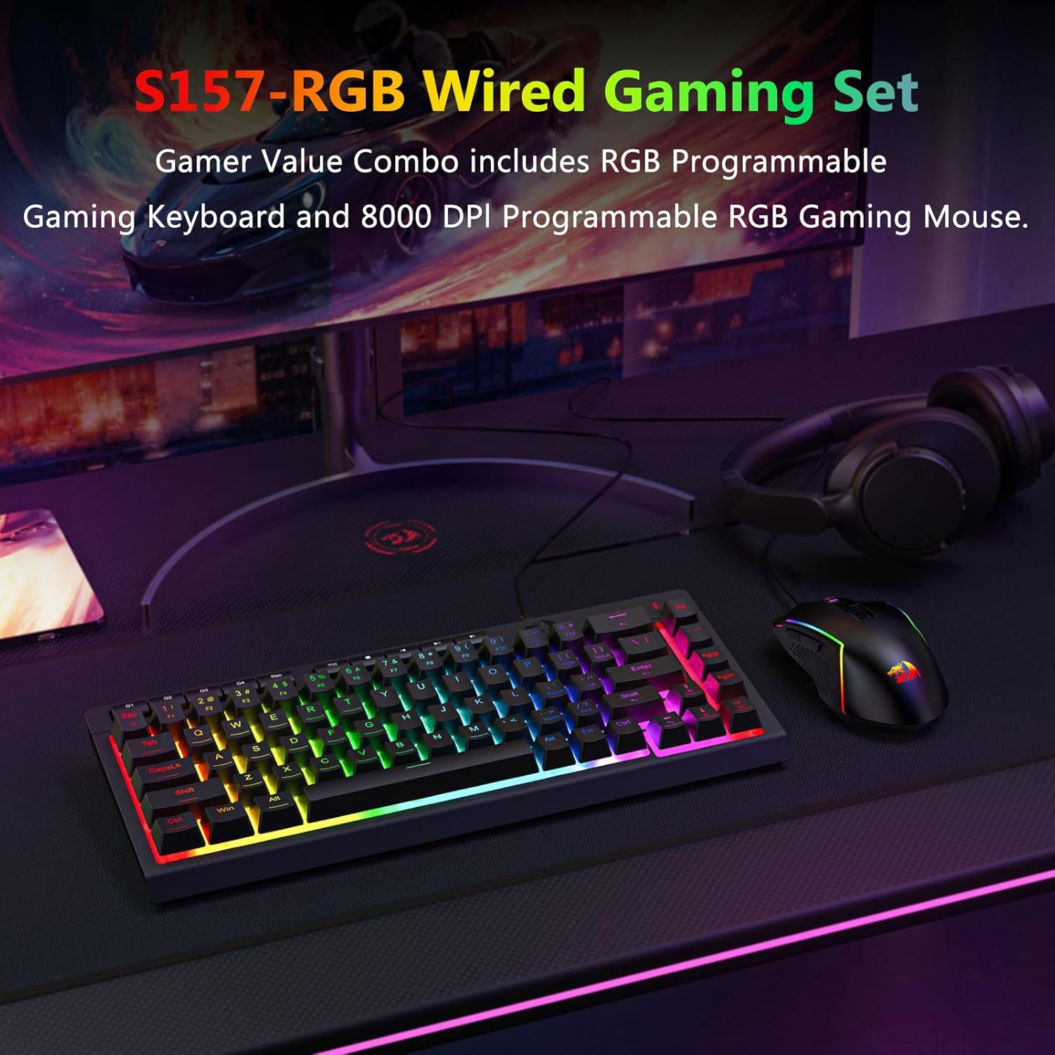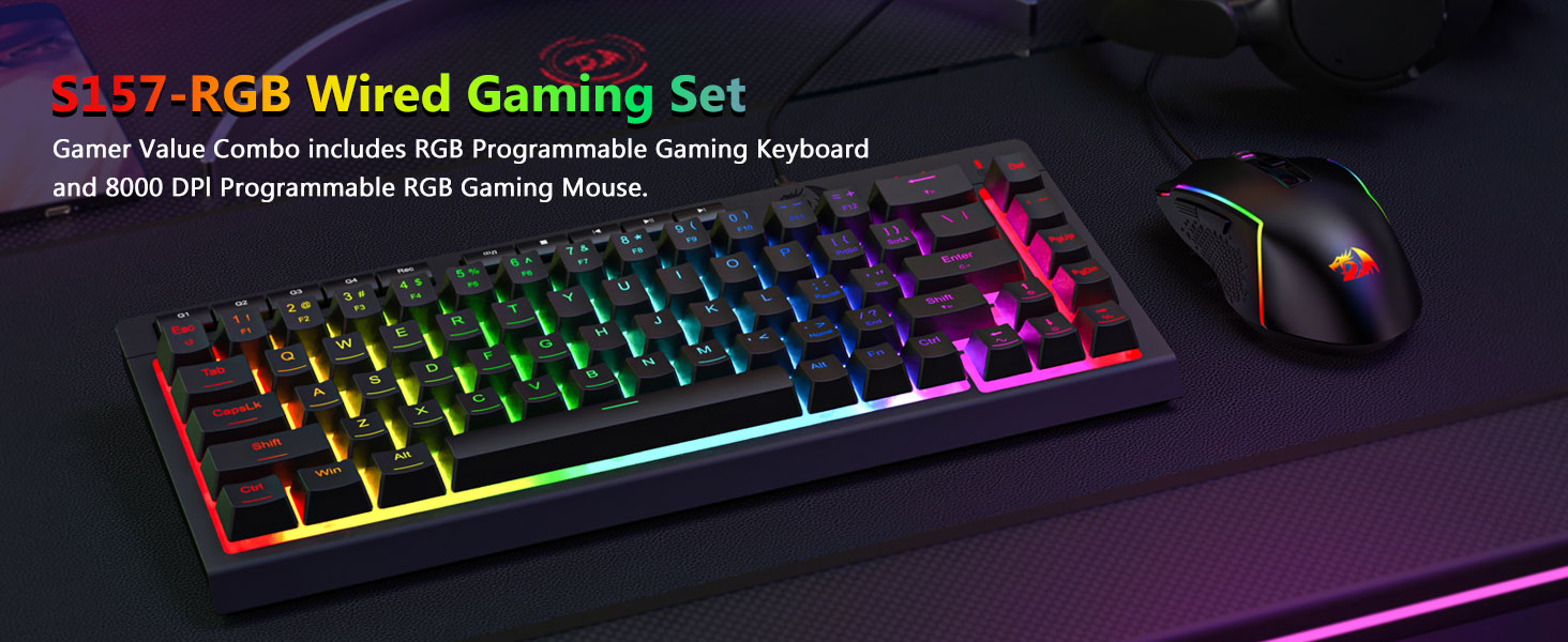 Luotettava näppäimistö ja hiiri ovat välttämättömiä sekä pelien suorituskyvylle että päivittäiselle tuottavuudelle. Musta S157 RGB -taustavalaistu langallinen pelinäppäimistö ja hiiri -yhdistelmä on suunniteltu tarjoamaan vakaat tulot, käytännölliset toiminnot ja puhtaan ulkoasun työpöydälle. Täysikokoisen näppäimistön ja reagoivan optisen hiiren yhdistävä sarja tukee monenlaisia sovelluksia pelisessioista toimistotehtäviin.