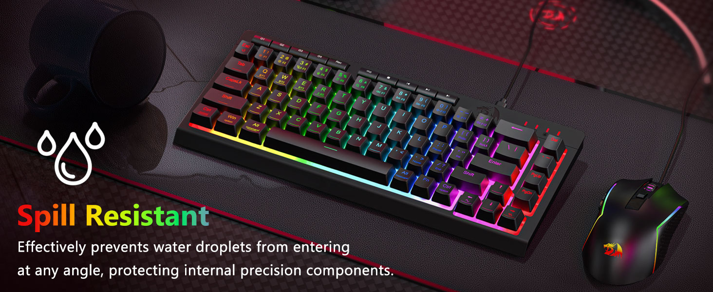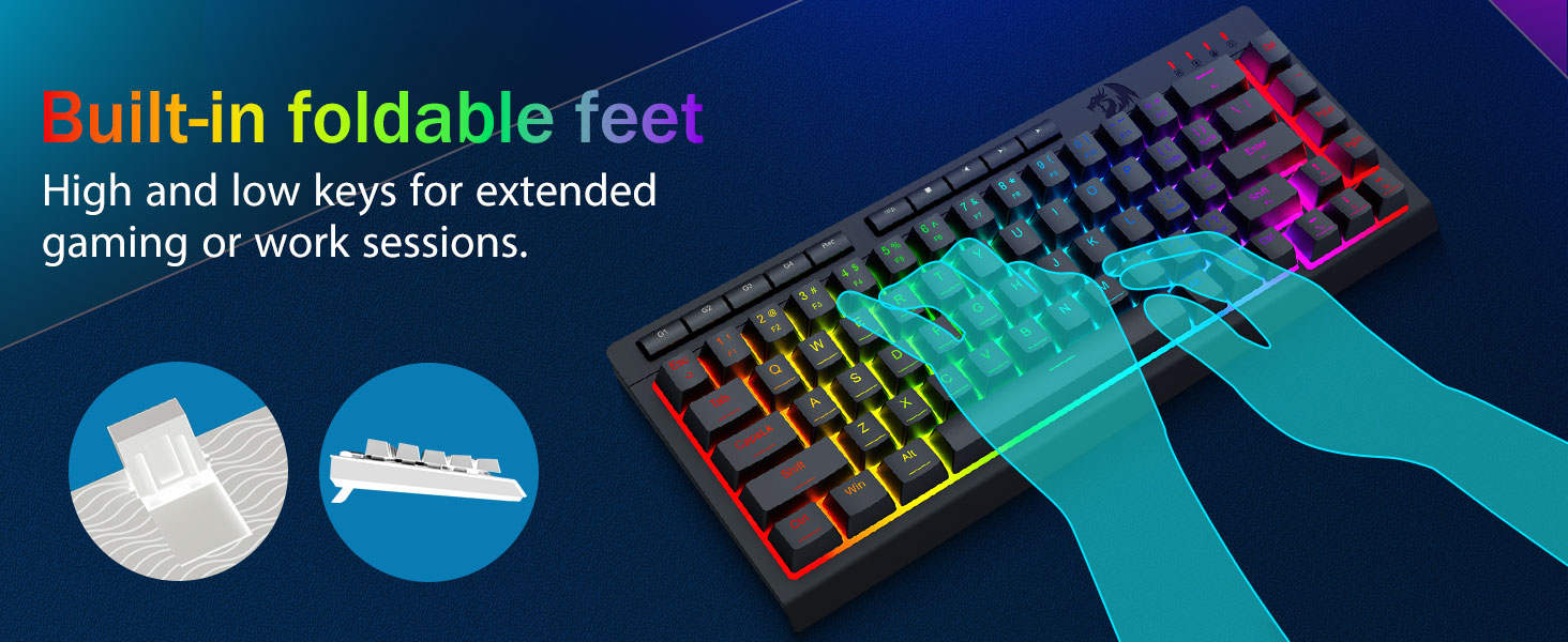 Näppäinsuojukset on suunniteltu kestäviksi ja tasalaatuisiksi, mikä auttaa säilyttämään mukavuuden pitkiä aikoja. RGB-valaistus on jakautunut tasaisesti, mikä parantaa näkyvyyttä ilman häiriötekijöitä.