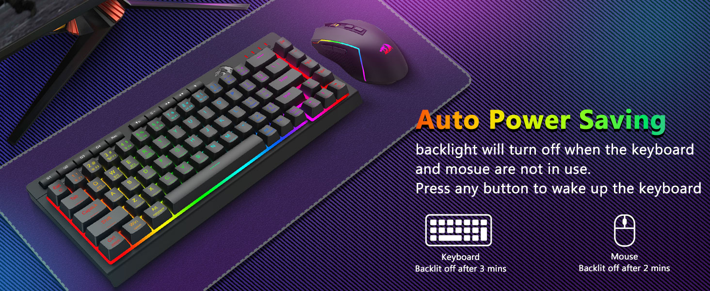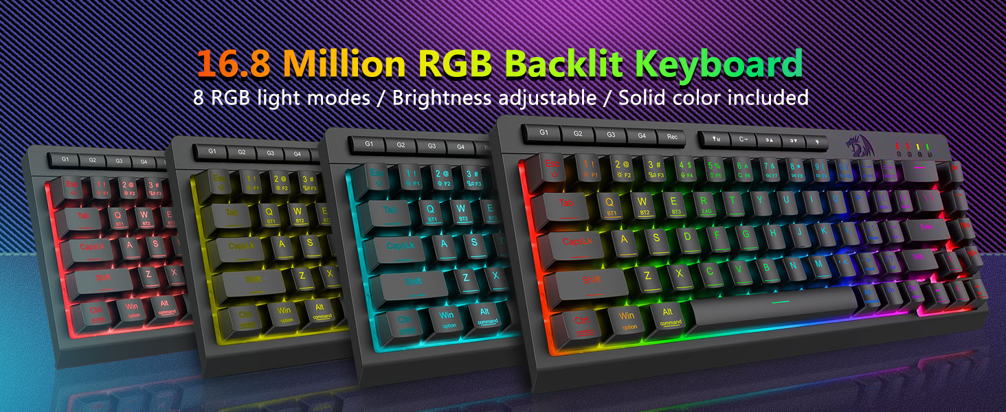 Mukaansatempaava RGB-valaistu näppäimistö ja hiiri- Päästä valloilleen 16,8 miljoonaa RGB-väriä 8 esiasetetulla tilalla (Rainbow Wave, Reactive Typing) + 6 DIY-profiilia. Säädä kirkkautta kirkkaasta hehkusta stealth-tilaan – ihanteellinen myöhäisillan pelaamiseen tai toimistokäyttöön.