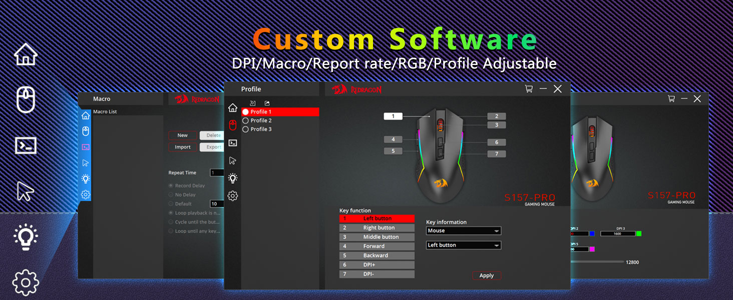 Max 12800 DPI säädettävä- Varustettu 5 sisäänrakennetulla DPI-tasolla, joiden avulla hiiren liikkeet voidaan rekisteröidä jokaiseen tarkaan paikkaan. 5 DPI-tasoa on vapaasti tehtävissä ohjelmiston avulla, joten pelaajat voivat vaihtaa nopeasti peliin.
