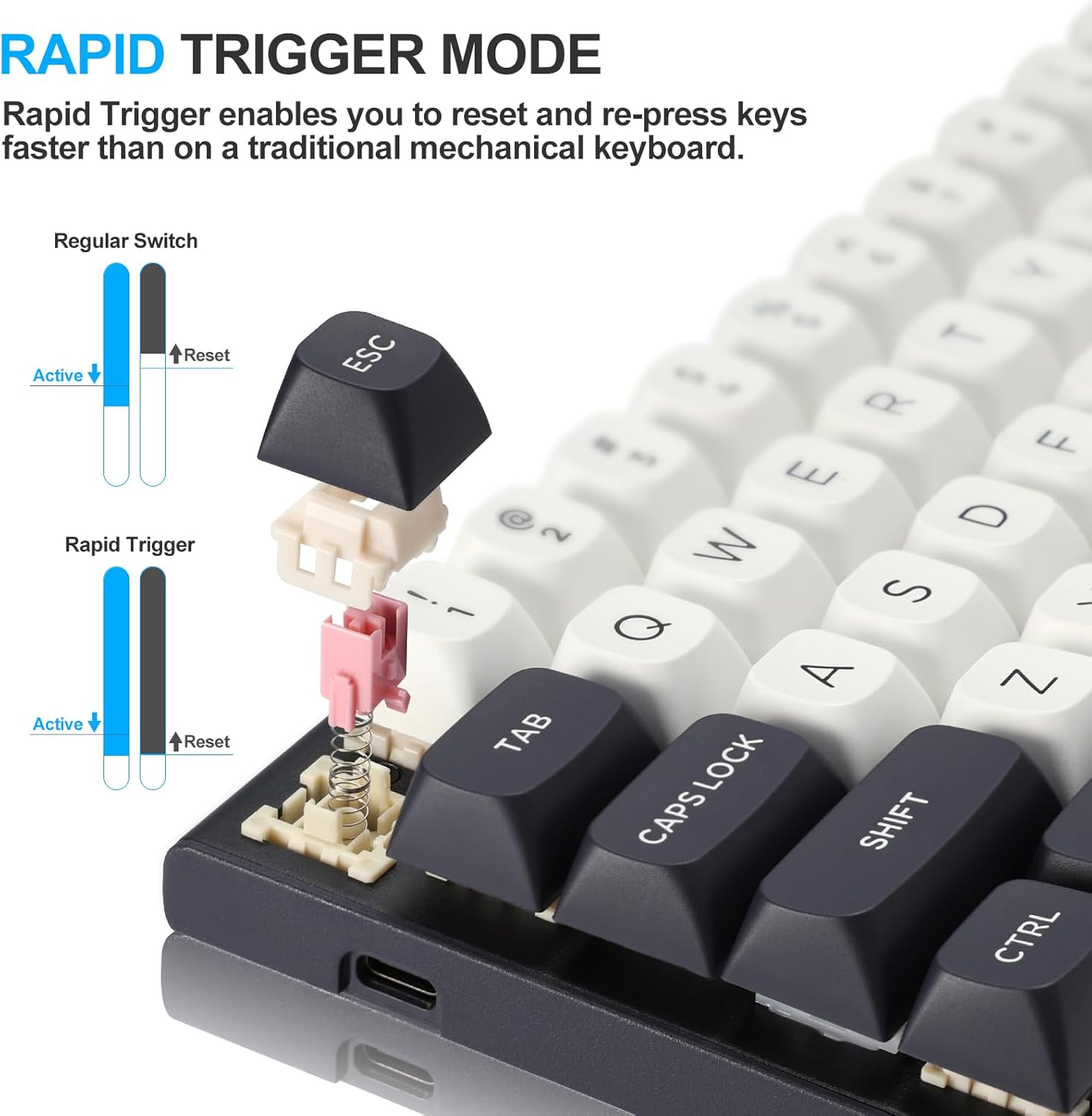 Rapid trigger -toiminto parantaa reagointikykyä mahdollistamalla nopeammat näppäinten palautukset, mikä on erityisen hyödyllistä kilpailevassa pelaamisessa. Tämän ominaisuuden avulla pelaajat voivat suorittaa toistuvia toimintoja tehokkaammin odottamatta täyttä avainta.
