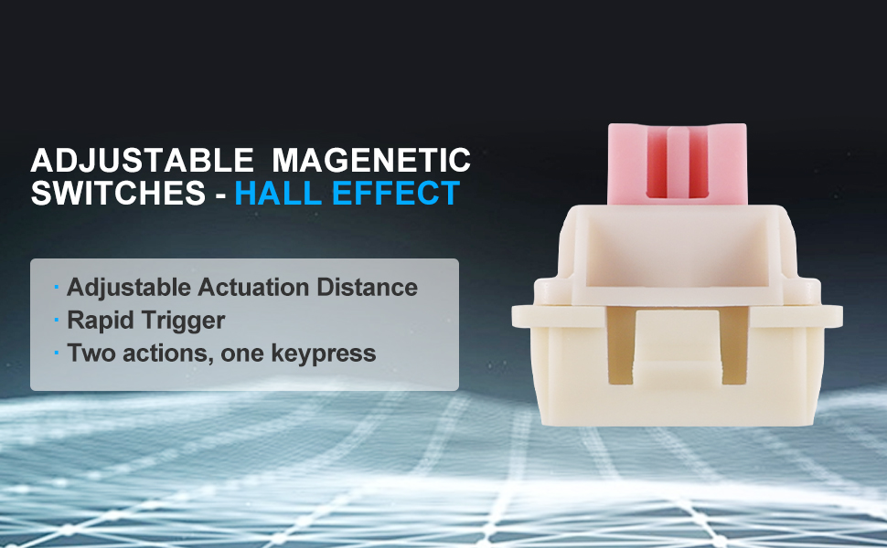 V: Magneettikytkimet käyttävät Hall-efektiantureita havaitsemaan näppäinliikkeen, mikä mahdollistaa säädettävät käyttökohdat ja tasaisen suorituskyvyn. Tämä vähentää kulumista ja tarjoaa pehmeämmän kirjoituskokemuksen perinteisiin mekaanisiin kytkimiin verrattuna.
