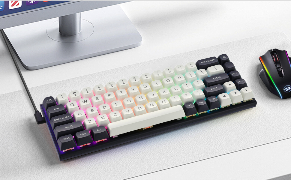Tämä näppäimistö keskittyy nopeaan käyttöön, johdonmukaisiin näppäinpainalluksiin ja selkeään muotoiluun, joka sopii sekä pelaamiseen että ammattikäyttöön. Sen 60 % asettelu poistaa tarpeettomat näppäimet säilyttäen samalla olennaiset toiminnot, minkä ansiosta käyttäjät voivat maksimoida pöytätilan ja säilyttää tehokkaan hallinnan pelin aikana.